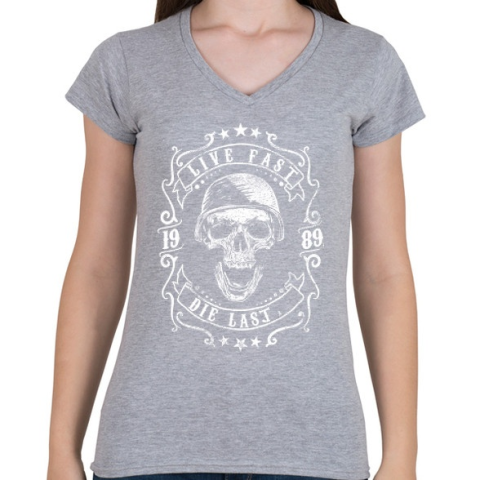 1 kép PRINTFASHION Halj meg utolsónak - Női V-nyakú póló - Sport szürke