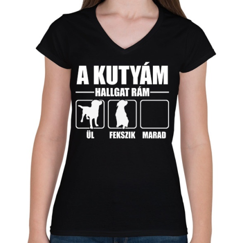 1 kép PRINTFASHION Hallgat rám a kutyám - Női V-nyakú póló - Fekete