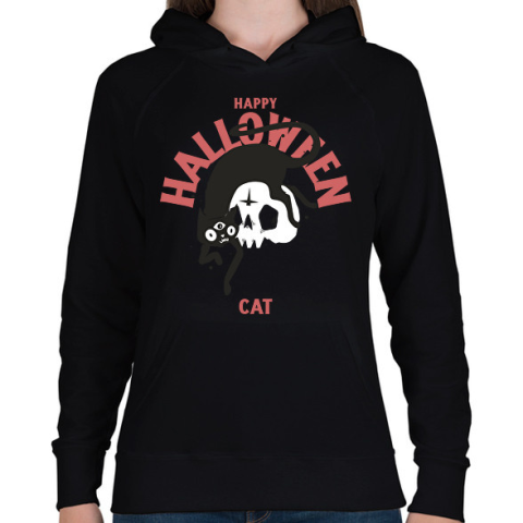 1 kép PRINTFASHION Halloween cat - Női kapucnis pulóver - Fekete