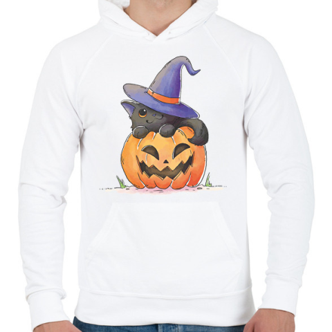 1 kép PRINTFASHION Halloween cica - Férfi kapucnis pulóver - Fehér