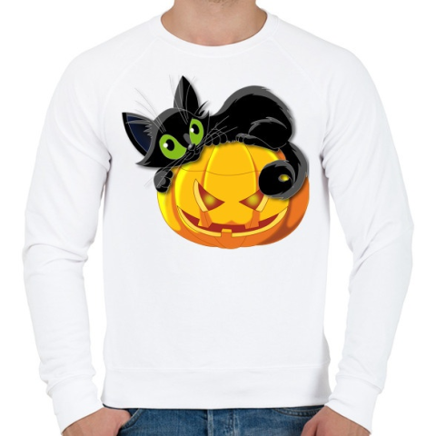 1 kép PRINTFASHION Halloween cica - Férfi pulóver - Fehér