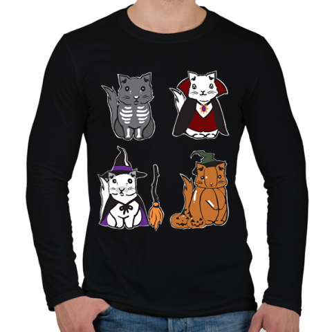 1 kép PRINTFASHION halloween cicák - Férfi hosszú ujjú póló - Fekete