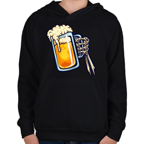 1 kép PRINTFASHION Halloween csontváz kéz sör - Gyerek kapucnis pulóver - Fekete