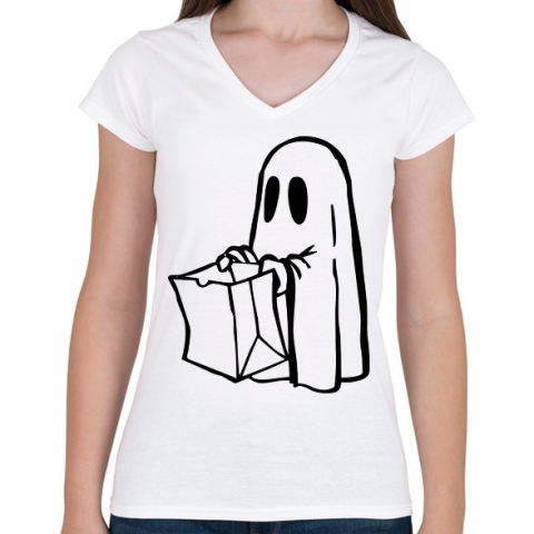1 kép PRINTFASHION Halloween-i szellem - Női V-nyakú póló - Fehér