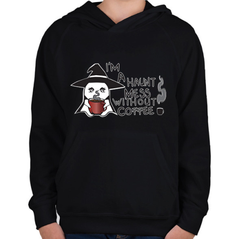 1 kép PRINTFASHION halloween kávészellem - Gyerek kapucnis pulóver - Fekete