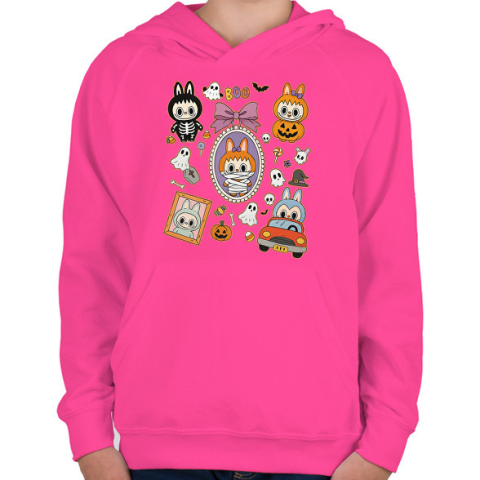 1 kép PRINTFASHION Halloween Labubu - Gyerek kapucnis pulóver - Fukszia