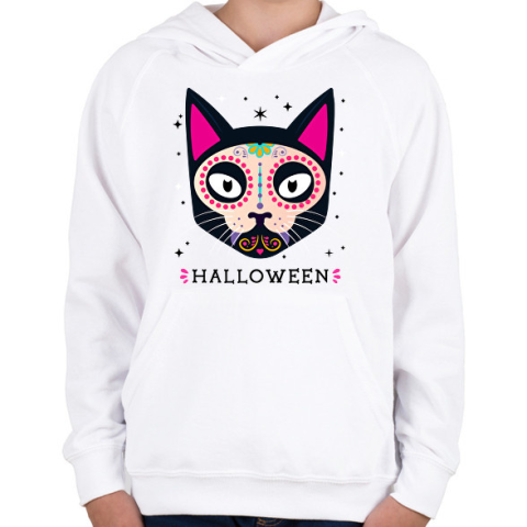 1 kép PRINTFASHION HALLOWEEN MACSKA - Gyerek kapucnis pulóver - Fehér