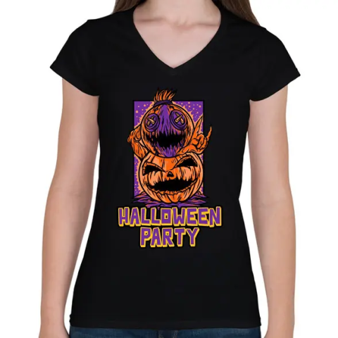1 kép PRINTFASHION HALLOWEEN PARTY - Női V-nyakú póló - Fekete