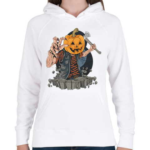1 kép PRINTFASHION Halloween tök fej - Női kapucnis pulóver - Fehér