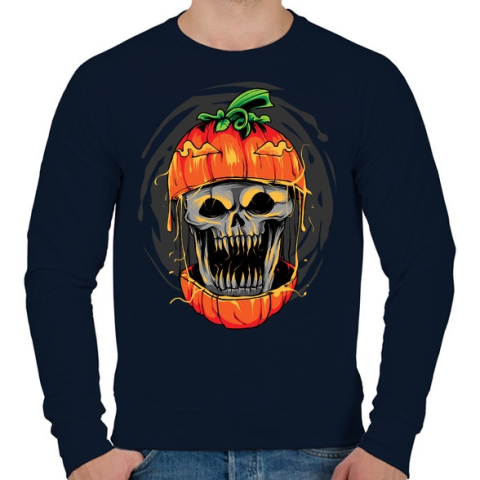 1 kép PRINTFASHION Halloween tök koponya - Férfi pulóver - Sötétkék