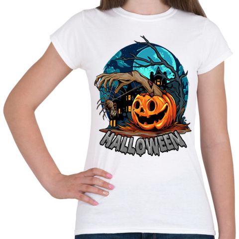 1 kép PRINTFASHION Halloween tökös minta - Női póló - Fehér