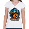 1 kép PRINTFASHION Halloween tökös minta - Női V-nyakú póló - Fehér
