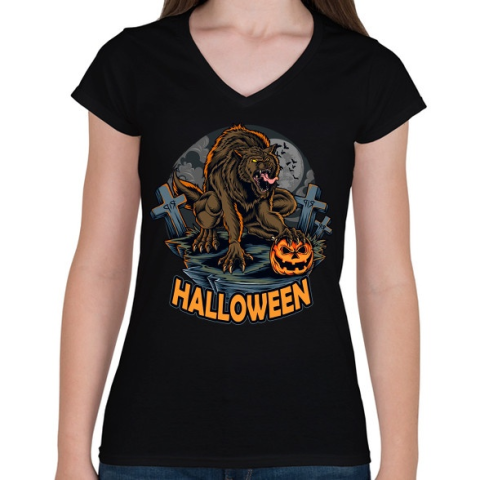 1 kép PRINTFASHION Halloween vérfarkas - Női V-nyakú póló - Fekete