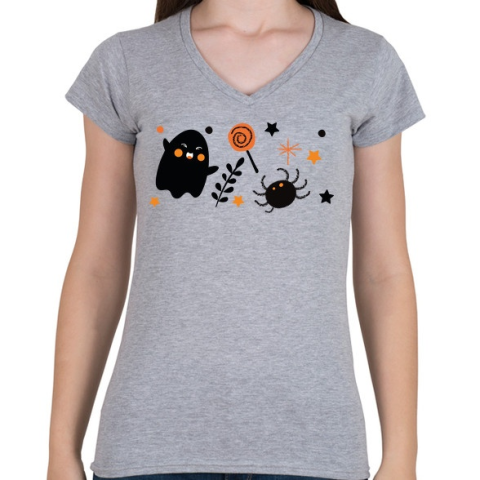 1 kép PRINTFASHION Halloweeni szellem - Női V-nyakú póló - Sport szürke