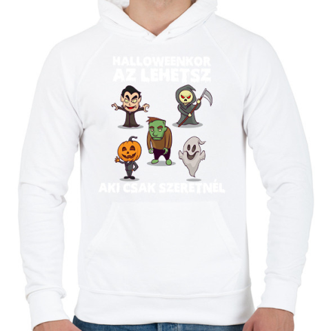 1 kép PRINTFASHION Halloweenkor az lehetsz aki csak szeretnél - Férfi kapucnis pulóver - Fehér