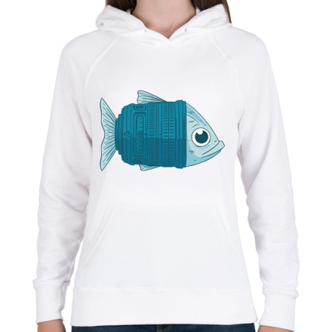 1 kép PRINTFASHION Halszem optika - Női kapucnis pulóver - Fehér