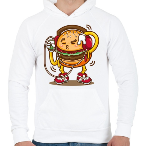 1 kép PRINTFASHION Hamburger - Férfi kapucnis pulóver - Fehér