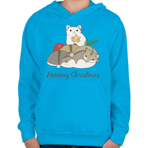 1 kép PRINTFASHION Hammy Christmas - Gyerek kapucnis pulóver - Azúrkék