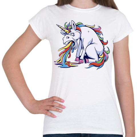 1 kép PRINTFASHION Hányós unikornis - Női póló - Fehér