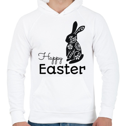 1 kép PRINTFASHION Happy Easter - Mintás nyúl - Férfi kapucnis pulóver - Fehér