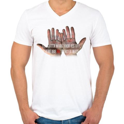 1 kép PRINTFASHION HARD WORK - Férfi V-nyakú póló - Fehér