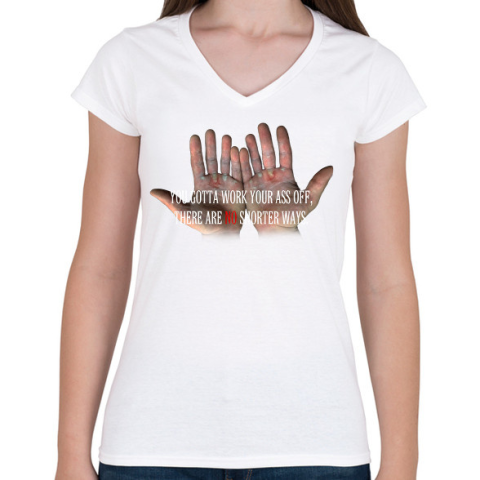 1 kép PRINTFASHION HARD WORK - Női V-nyakú póló - Fehér
