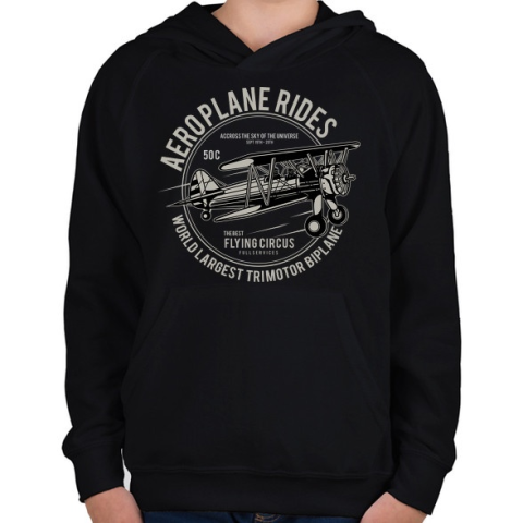 1 kép PRINTFASHION Három motoros repülőgép - Gyerek kapucnis pulóver - Fekete