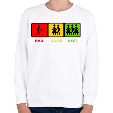 1 kép PRINTFASHION Három opció - Gyerek pulóver - Fehér