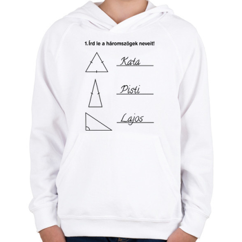 1 kép PRINTFASHION Háromszögek nevei - Gyerek kapucnis pulóver - Fehér