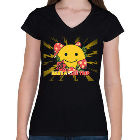 1 kép PRINTFASHION HAVE A NICE TRIP - Női V-nyakú póló - Fekete