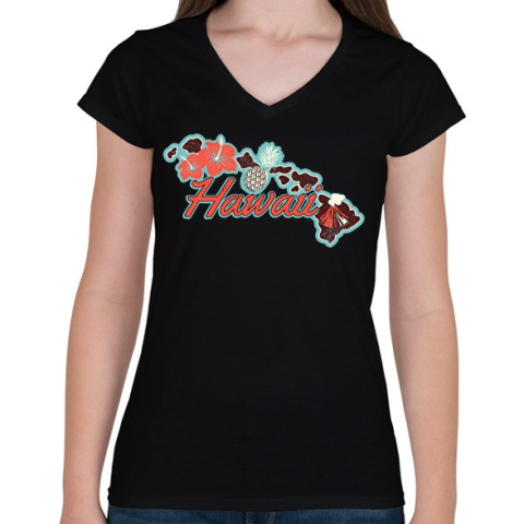 1 kép PRINTFASHION Hawaii - Női V-nyakú póló - Fekete