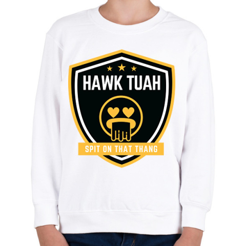 1 kép PRINTFASHION Hawk Tuah… Spit On That Thang - Gyerek pulóver - Fehér