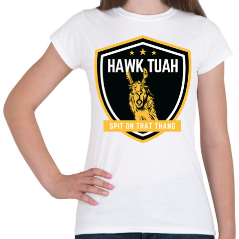 1 kép PRINTFASHION Hawk Tuah… Spit On That Thang - láma - Női póló - Fehér