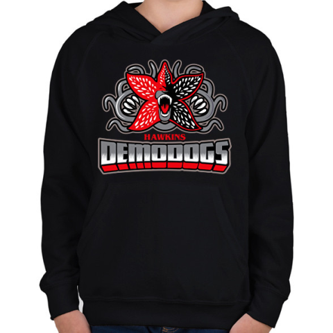 1 kép PRINTFASHION Hawkins Demodogs - Gyerek kapucnis pulóver - Fekete