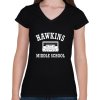 1 kép PRINTFASHION Hawkins Middle School - Fehér - Női V-nyakú póló - Fekete