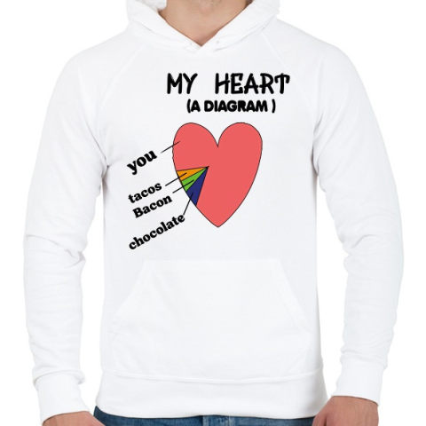 1 kép PRINTFASHION Heart diagram - Férfi kapucnis pulóver - Fehér