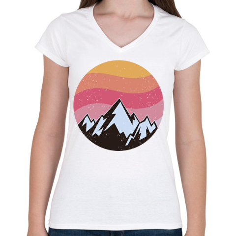 1 kép PRINTFASHION Hegycsúcs - Női V-nyakú póló - Fehér