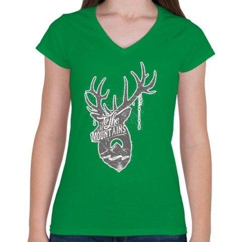 1 kép PRINTFASHION Hegyekben - Női V-nyakú póló - Zöld