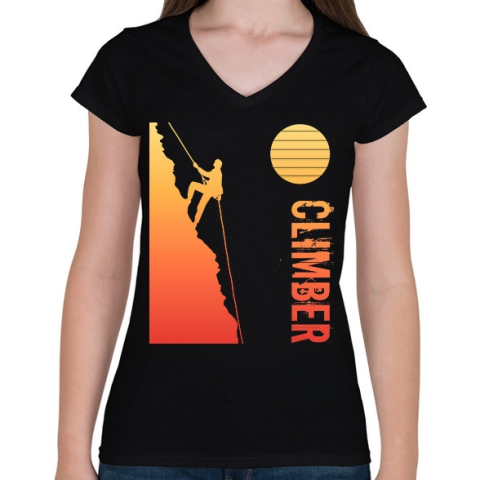 1 kép PRINTFASHION hegymászás - Női V-nyakú póló - Fekete