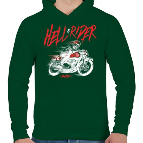 1 kép PRINTFASHION Hell Rider - fehér - Férfi kapucnis pulóver - Sötétzöld