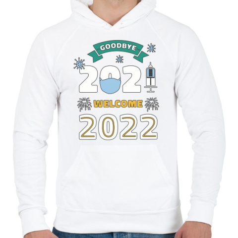 1 kép PRINTFASHION Helló 2022 - újév - Férfi kapucnis pulóver - Fehér