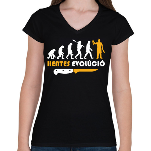 1 kép PRINTFASHION Hentes evolúció - Női V-nyakú póló - Fekete