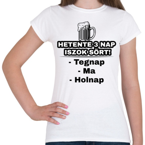 1 kép PRINTFASHION Hetente 3 nap iszok sört! - Női póló - Fehér