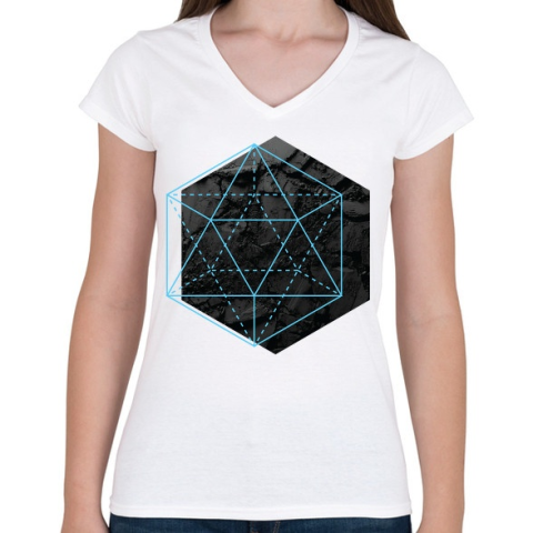 1 kép PRINTFASHION Hexagonal - Női V-nyakú póló - Fehér