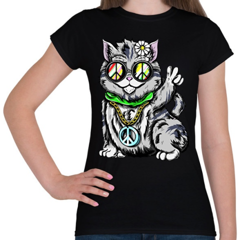 1 kép PRINTFASHION Hippi macska - Női póló - Fekete