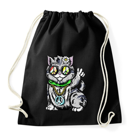 1 kép PRINTFASHION Hippi macska - Sportzsák, Tornazsák - Fekete