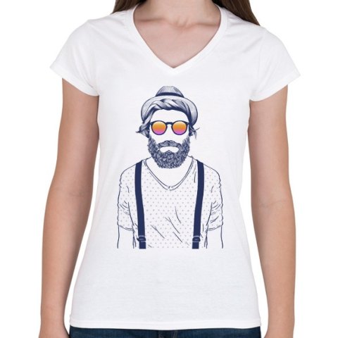 1 kép PRINTFASHION Hipster - Női V-nyakú póló - Fehér