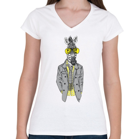 1 kép PRINTFASHION Hipster Zebra - Női V-nyakú póló - Fehér