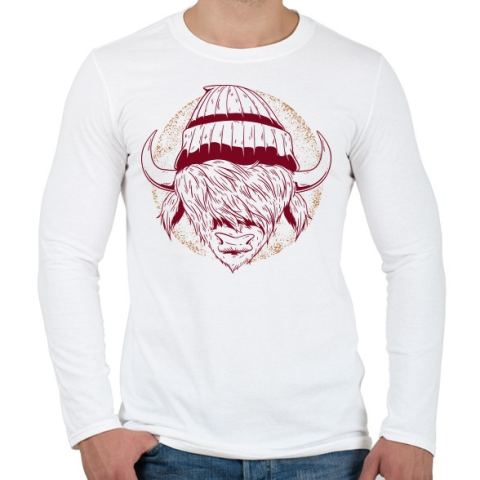 1 kép PRINTFASHION Hipszter Bika - Férfi hosszú ujjú póló - Fehér