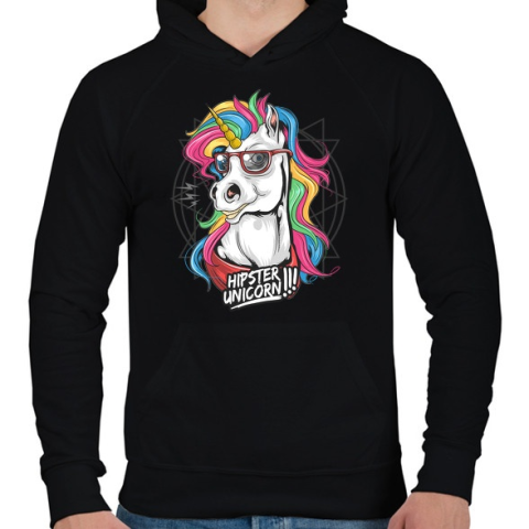 1 kép PRINTFASHION Hipszter unikornis - Férfi kapucnis pulóver - Fekete